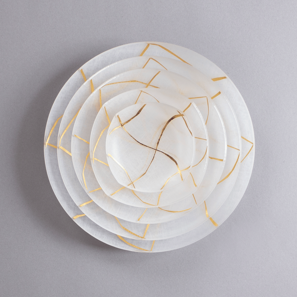 高濃度アルコール、塩素系漂白剤はひび割れや箔の変色が発生する場合がございます。清掃および消毒には中性洗剤を薄めたもの、次亜塩素酸水の希釈液で行う事をお勧めいたします。洗っていただく際は柔らかいスポンジ等で優しく洗ってください。