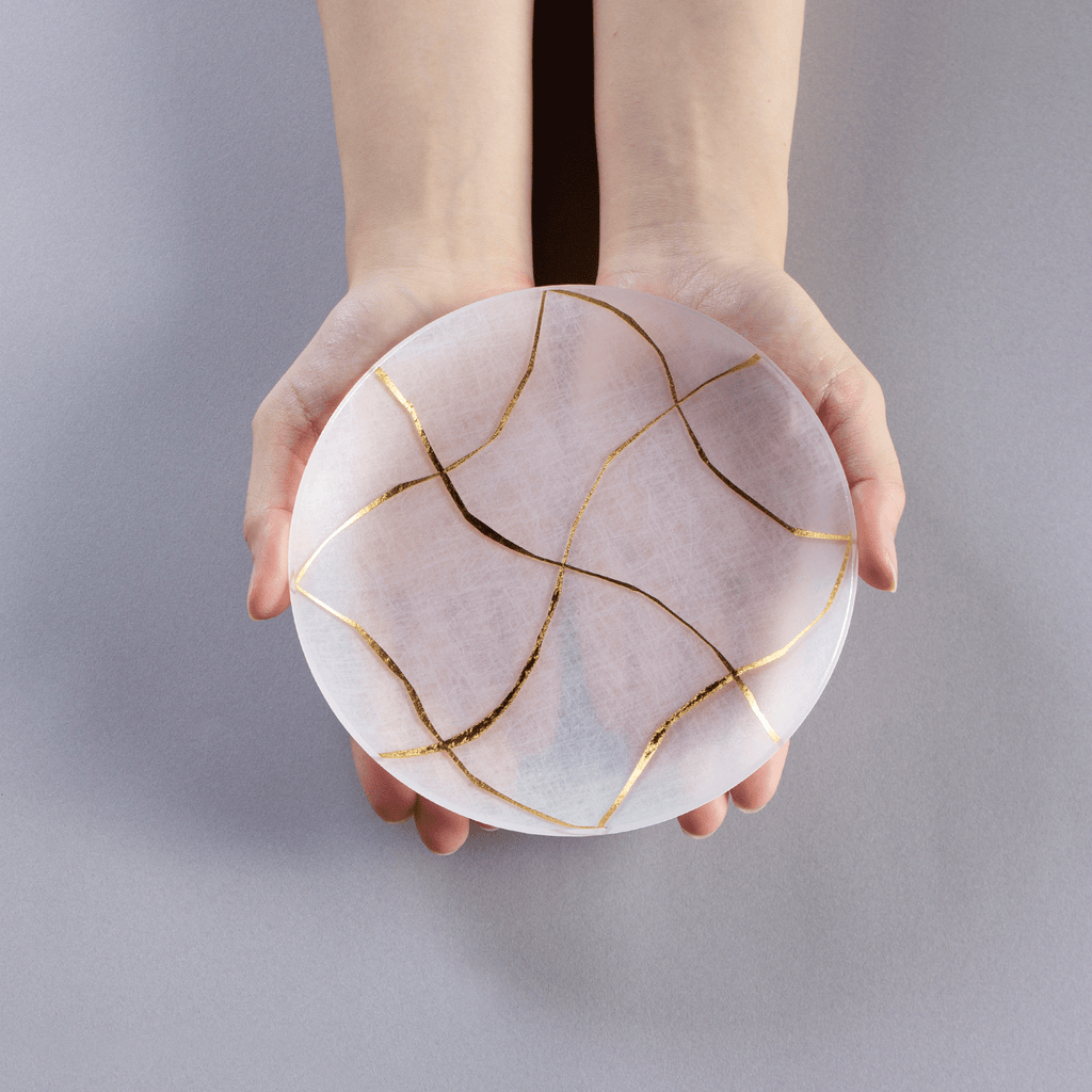 高濃度アルコール、塩素系漂白剤はひび割れや箔の変色が発生する場合がございます。清掃および消毒には中性洗剤を薄めたもの、次亜塩素酸水の希釈液で行う事をお勧めいたします。洗っていただく際は柔らかいスポンジ等で優しく洗ってください。