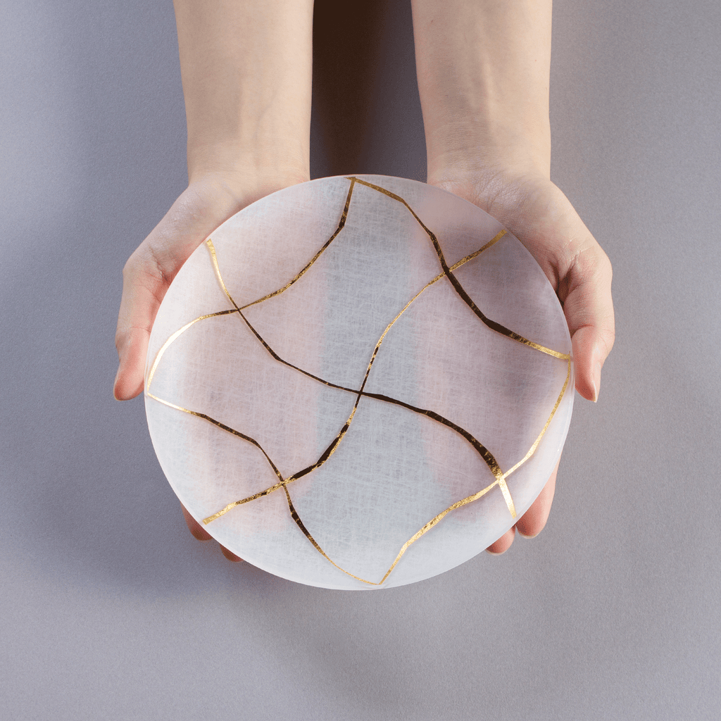 高濃度アルコール、塩素系漂白剤はひび割れや箔の変色が発生する場合がございます。清掃および消毒には中性洗剤を薄めたもの、次亜塩素酸水の希釈液で行う事をお勧めいたします。洗っていただく際は柔らかいスポンジ等で優しく洗ってください。