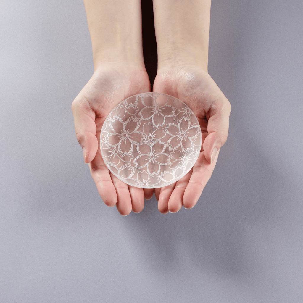 京都の白生地ブランド「伊と幸」とのコラボレーション。“薄絹刺繍”と呼ばれる生地をアクリルに挟みこみ、象ったまめざら。それぞれの柄には吉祥文をはじめ様々な願いや想いが込められています。