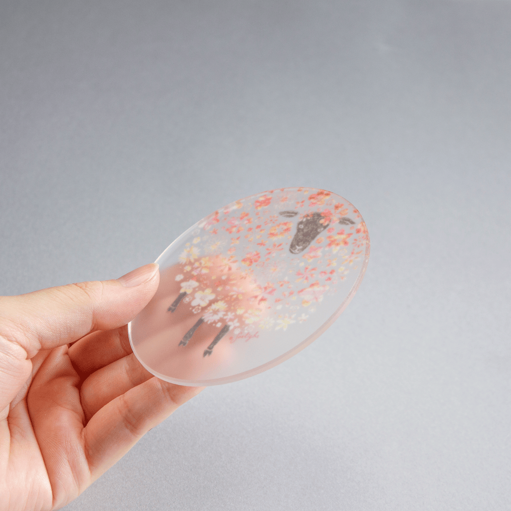 植物模様で描かれた動物たちに、柔らかな色彩をのせたコースター。